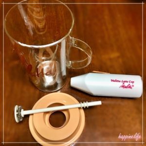 カップにミルクを入れ、メッシュ部分を動かすことで泡が作れます。上下に動かすだけで簡単に作れますが、パーツが若干多いのでお手入れが難しそうな印象です。