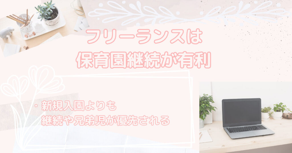 私の実体験ですが、在宅フリーランスで認可保育園にこどもを標準時間で預けています。フリーランスの申請時は、保育園の継続依頼でした。