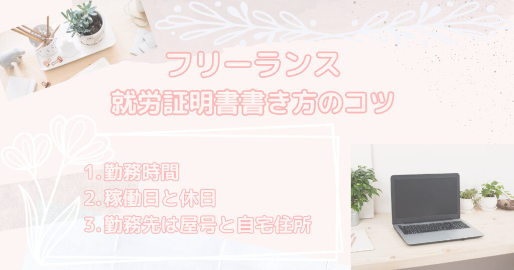 フリーランスは、個人事業主のため自分で記入します。就労証明書の記入は、会社務めの方は職場の人事や事務の方が書いてくれました。記入の際に困る箇所が出てくるかもしれませんので、書き方のポイントを紹介していきます。